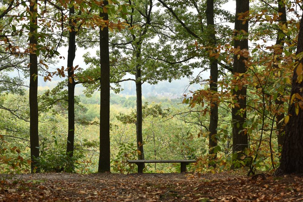 En haut de coteau des tables de pique-nique et des bancs invitent à la pause et à la méditation.