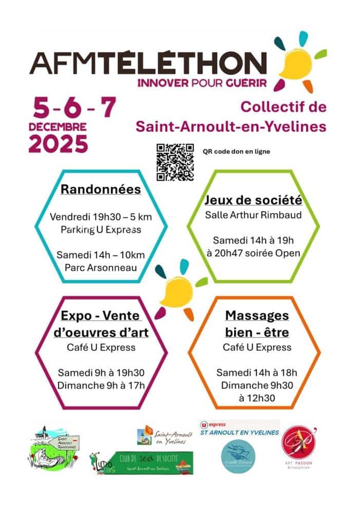 À l'occasion du Téléthon, la ville de Saint-Arnoult-en-Yvelines vous propose plusieurs animations.