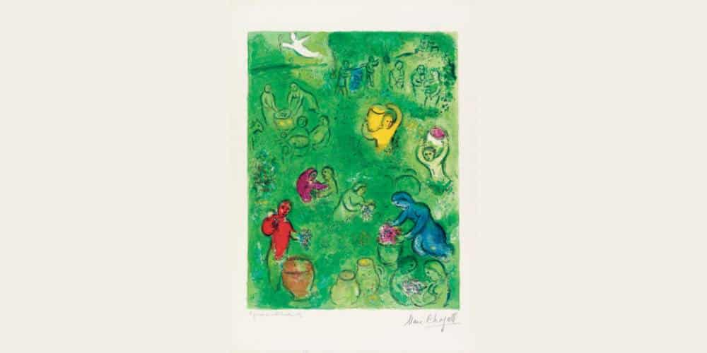 à travers une sélection de lithographies, autour de la série "Daphnis et Chloé", l'exposition révèle en Chagall un poète rêveur et humaniste, inspiré par les grands récits antiques, bibliques et littéraires.
