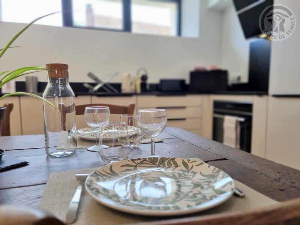 Vous disposerez d’un séjour lumineux avec canapé, TV et connexion Wi-Fi, ainsi que d’une cuisine ouverte équipée (réfrigérateur, plaques induction, lave-vaisselle, micro-ondes). À l’étage, une chambre avec lit double (ou deux lits individuels sur demande), un coin bureau et salon ainsi qu’une salle d’eau moderne avec douche et lave-linge complètent ce logement.