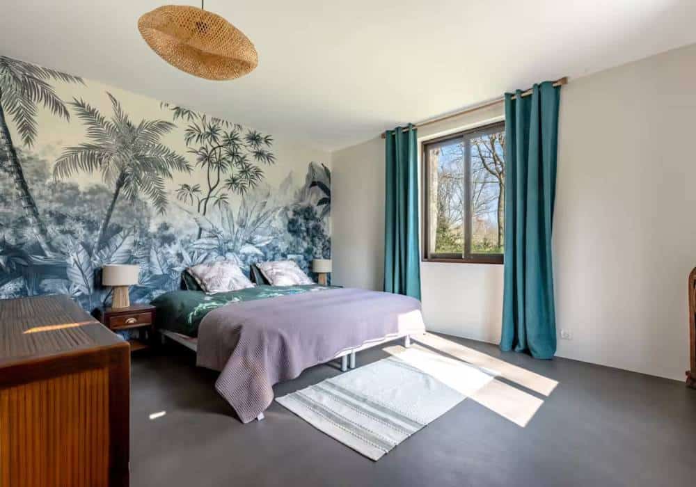 - Chambre 4 : ambiance Bali de 32 m² avec un lit de 180 cm, une salle de bain avec baignoire, double vasque et toilettes.