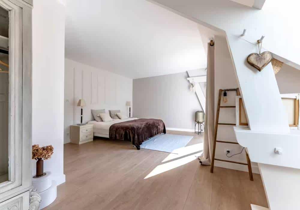 - Chambre 3 de 30 m² : dispose d’un lit de 180 cm (possibilité d’ajouter un lit simple de 90 cm), d’une douche à l’italienne et de toilettes.