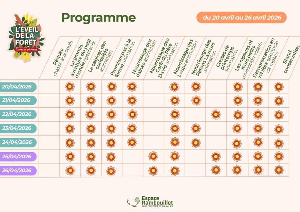 Pendant les vacances, week-ends et jours fériés du mois d’avril, l’Éveil de la forêt vous propose une programmation festive et familiale pour célébrer la renaissance du vivant.