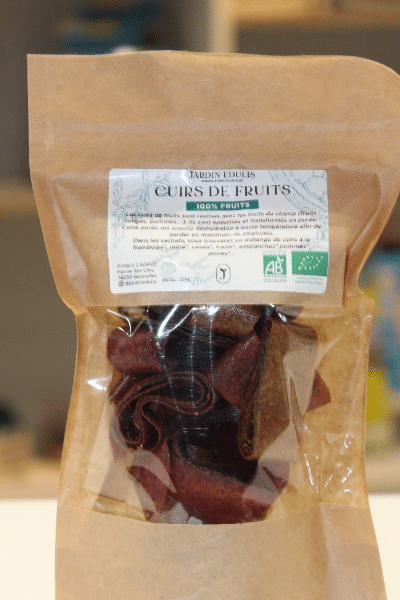 En savoir plusLes cuirs de fruits sont réalisés avec les fruits du champ (fruits rouges, pommes…) Ils sont épépinés et transformés en purée. Cette purée est e...