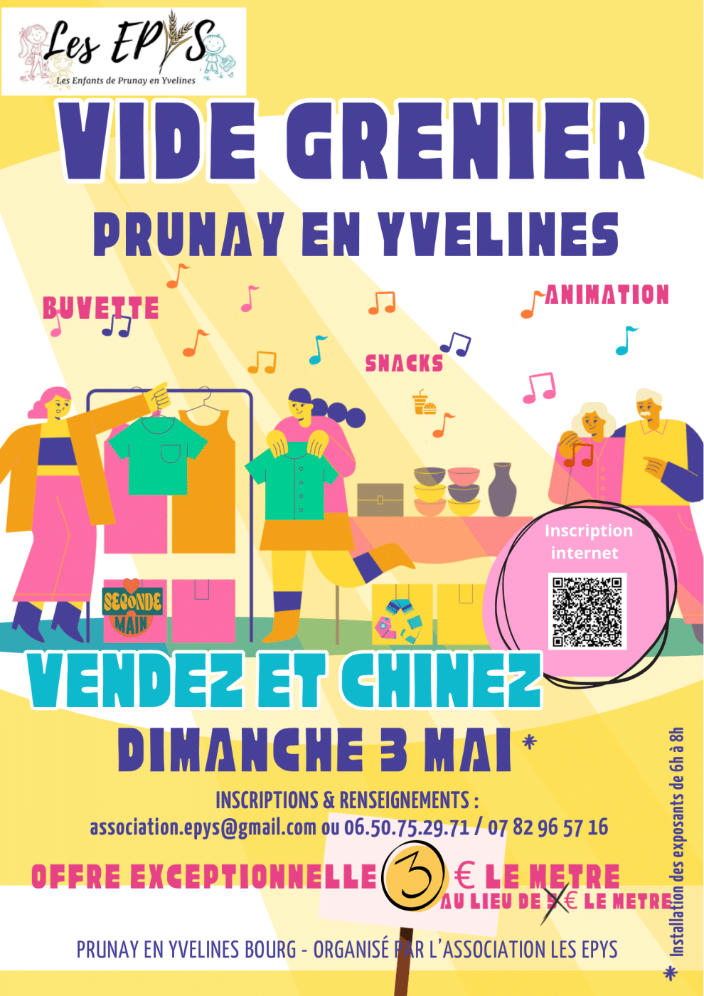 Vide grenier de Prunay en Yvelines 3€ le mètre au lieu de 5€